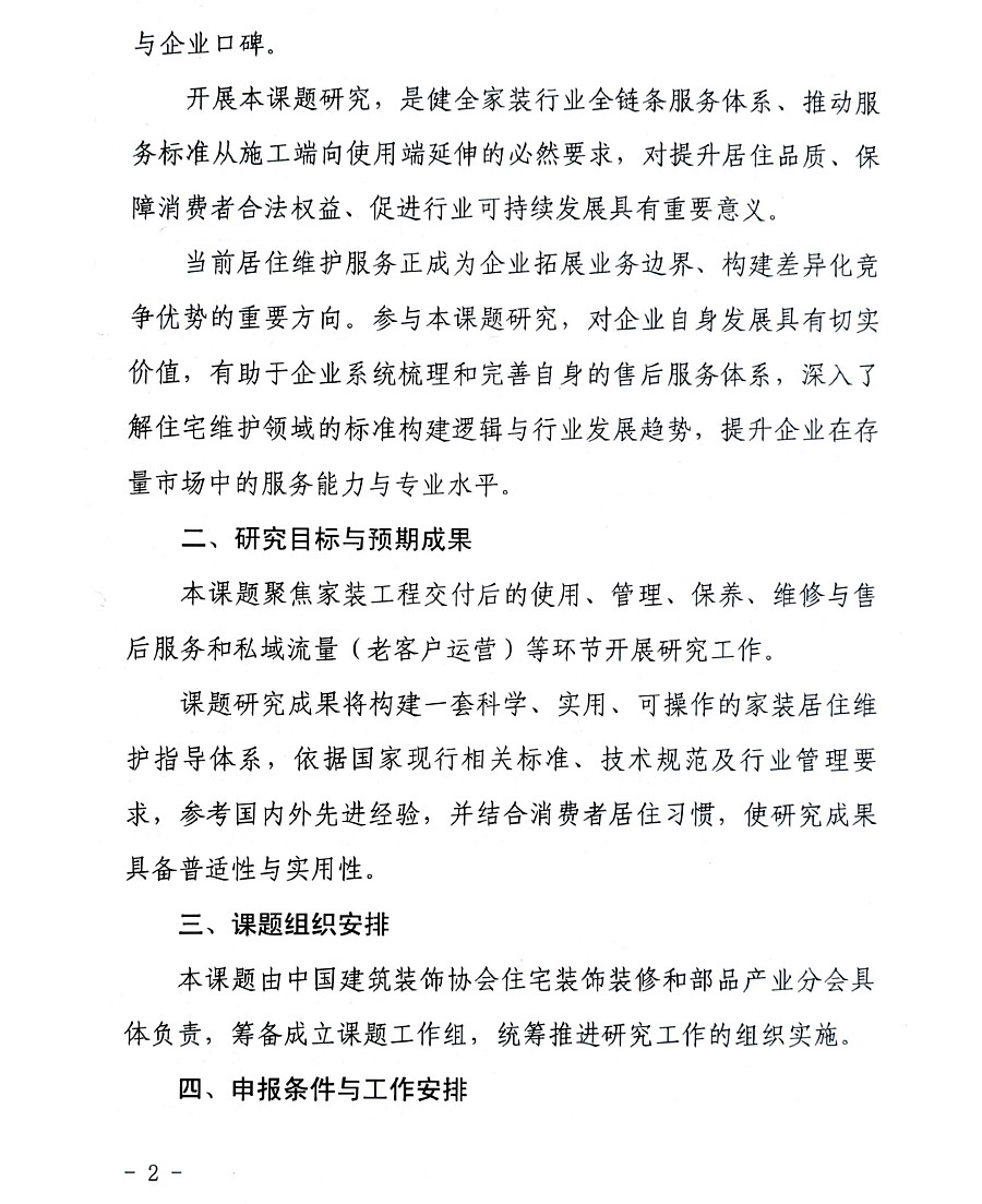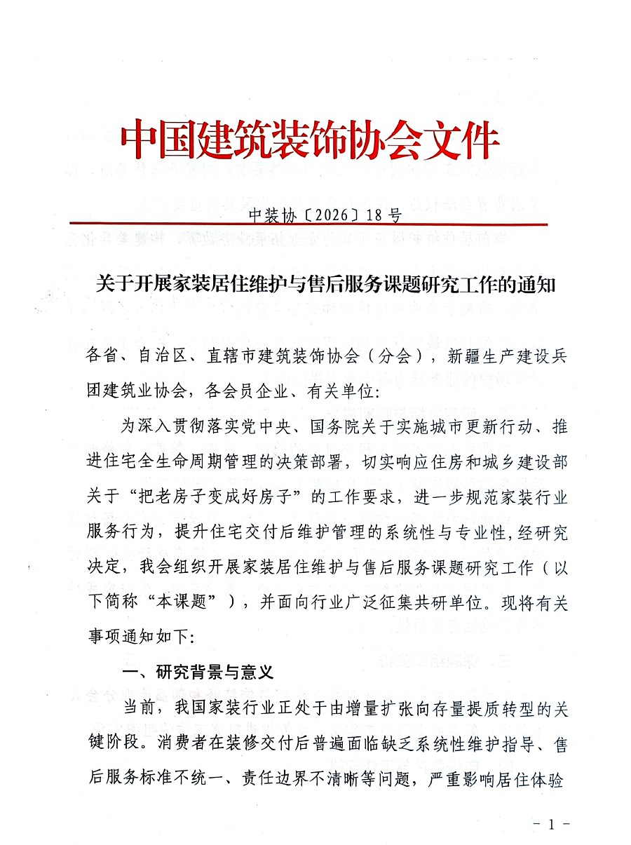 关于开展家装居住维护与售后服务课题研究工作的通知